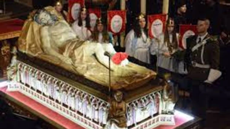 Viernes y Sábado Santo adoración y guardia ante el Cristo yacente en la iglesia de Santo Domingo y San Martin