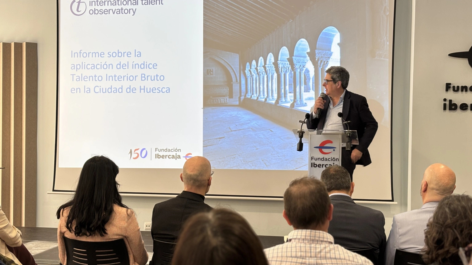 Uno de los ejes centrales de la jornada ha sido la presentación del informe de Talento Interior Bruto (TIB) de la ciudad, un índice creado por los académicos Oriol Amat y Áurea Rodríguez que mide la calidad del talento de un territorio. El estudio, encargado por Fundación Ibercaja y el Ayuntamiento, analiza la capacidad de Huesca para atraerlo, desarrollarlo y retenerlo a través de veinticinco variables distintas.