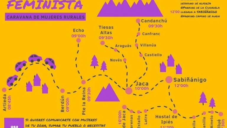 Este año, la Plataforma 8M está organizando LA CARAVANA de mujeres rurales, para animar y facilitar a las mujeres de los pueblos a unirse a las concentraciones que habrá en Sabiñánigo a las 12 h y en Jaca a las 19 h. Más información en colectivototo.sabi@gmail.com y cartel adjunto.