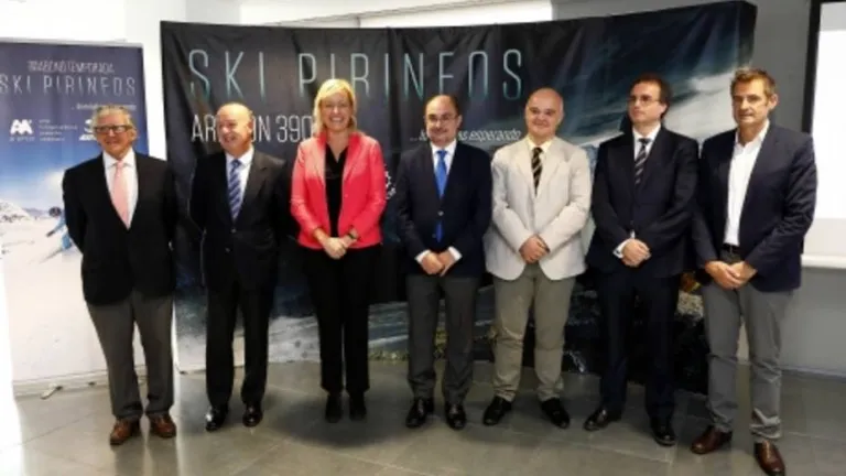 En la presentación de Ski Pirineos también han participado la presidenta de Aramón y consejera de Economía, Marta Gastón, el director general de Astún, Jesús Santacruz, y el presidente de Explotaciones Turísticas de Candanchú, Fernando de Yarza.