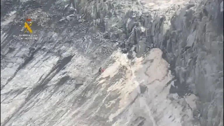 Por otra parte sobre las 16’00 horas se recibió otro aviso a través de 112 en la central 062 de la Guardia Civil de Huesca, indicando que un montañero se había resbalado cuando se encontraba progresando por el glaciar del Aneto y se encontraba en una situación muy crítica en el lugar donde había podido detenerse, por lo que se dirigieron al lugar GREIM y helicóptero con base en Benasque y médico del 061, que fueron ayudados por personal del GREIM de Huesca que se encontraban realizando nivel técnico en las proximidades y se encontraron con la situación, procediendo a acceder hasta el accidentado y asegurándolo hasta la llegada del resto del equipo de rescate. Se evacúa al accidentado y a su acompañante que se encontraba más arriba en sendos ciclos de grúa, siendo trasladados hasta Benasque, donde se hace una exploración por parte del médico del 061 del accidentado, el cual no presentaba lesiones de importancia por lo que no es necesario su traslado a centro médico. El accidentado es un varón de 68 años vecino de Málaga y su acompañante es un cordobés de 60 años.