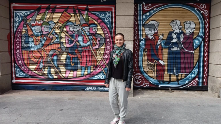 Cinco puertas de garaje del entorno han sido transformadas en lienzos urbanos mediante una serie de pinturas murales de inspiración medieval realizadas con la técnica del grafiti