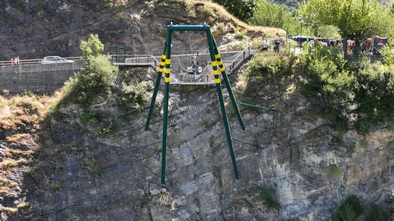 El columpio está suspendido a 150 metros sobre el embalse de búbal. En definitiva, un columpio colgado de un acantilado y con unas vistas privilegiadas que realiza un vuelo dirigido de 60 metros. Es una atracción apta para todos los públicos pero hay que pesar más de 50 kg y menos de 125. El coste del billete es de 36 euros.