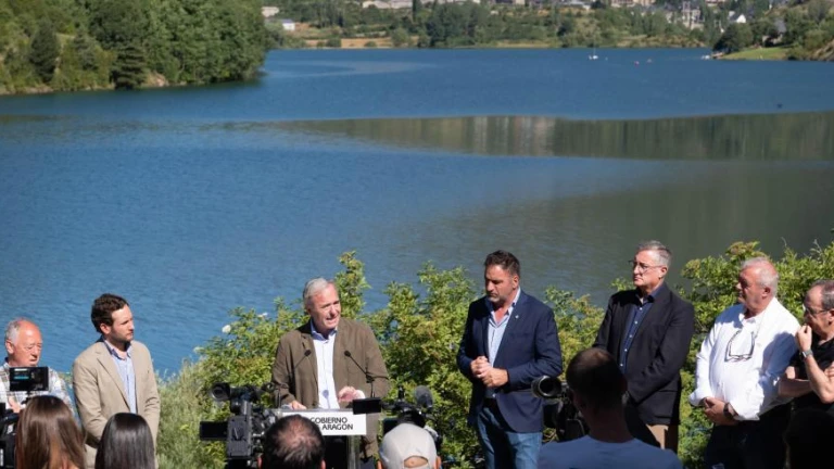 “En Aragón lo tenemos muy claro: ni queremos ni necesitamos placas fotovoltaicas sobre las aguas de nuestros embalses”, ha señalado el presidente aragonés, acompañado del presidente de la Diputación Provincial de Huesca (DPH), Isaac Claver, así como de alcaldes de la zona. “Ni estamos dispuestos a que las instalen, ni estamos dispuestos a no dar la batalla para evitarlo”, ha hecho hincapié.