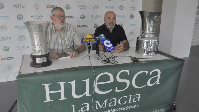 Antonio Betrán, presidente del Club Hielo Jaca, y Antonio Lecuona, tesorero de la entidad jaquesa, explicaron los pormenores de la participación del equipo masculino de hockey sobre hielo en la que es la segunda máxima competición europea por clubes, solo por detrás de la Champions Hockey League.