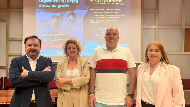 Es una formación para directivos y mandos intermedios de pymes, micro pymes y autónomos, con el fin de mejorar su productividad y sus posibilidades de crecimiento e internacionalización. Es gratuita y llega tras la primera inclusión con Jaca y su Ayuntamiento, que fue ‘Agentes del cambio digital’, que está a punto de finalizar y fue un éxito.