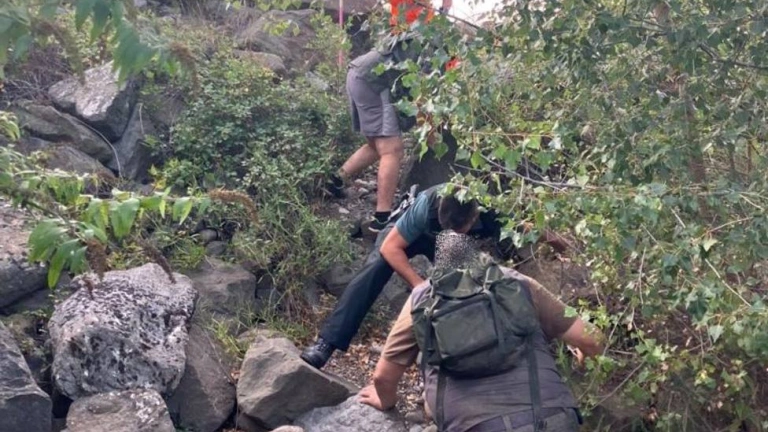 Inmediatamente, agentes del Puesto de la Guardia Civil de Sallent de Gallego recorrieron la zona hasta localizar el punto exacto donde se encontraba el accidentado, encontrándolo en un hondo en la orilla del río. El mismo, se encontraba sentado en una zona con espesa vegetación y con una fuerte dolencia en el tobillo derecho, manifestando que no se podía poner en pie.