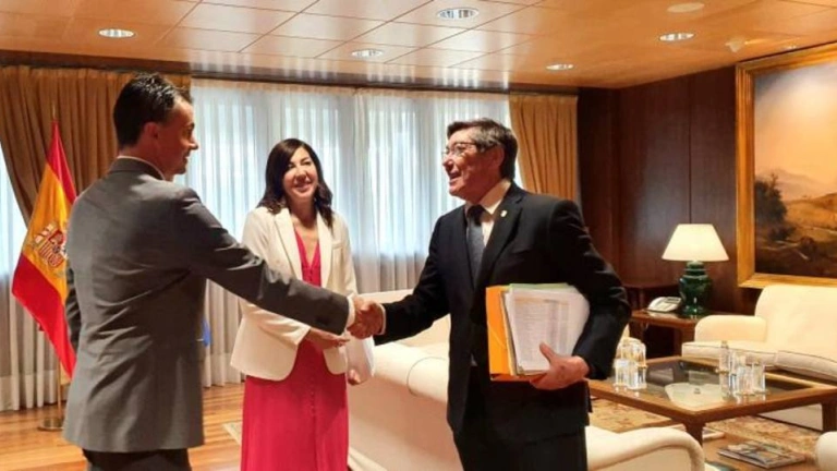 El vicepresidente y consejero de Industria del Gobierno de Aragón, Arturo Aliaga, el ministro de Industria, Comercio y Turismo, Héctor Gómez, y la secretaria de Estado de Turismo, Rosana Morillo, han mantenido un encuentro previo a la reunión de la Conferencia Sectorial de Turismo. El tema central ha sido la reprogramación de los fondos europeos tras la renuncia a acometer la unión de estaciones Astún-Formigal. El ministro se ha comprometido a crear un grupo de trabajo en el que estarán representadas ambas administraciones. En los próximos días se decidirá la reasignación de los 26,4 millones de los fondos europeos.