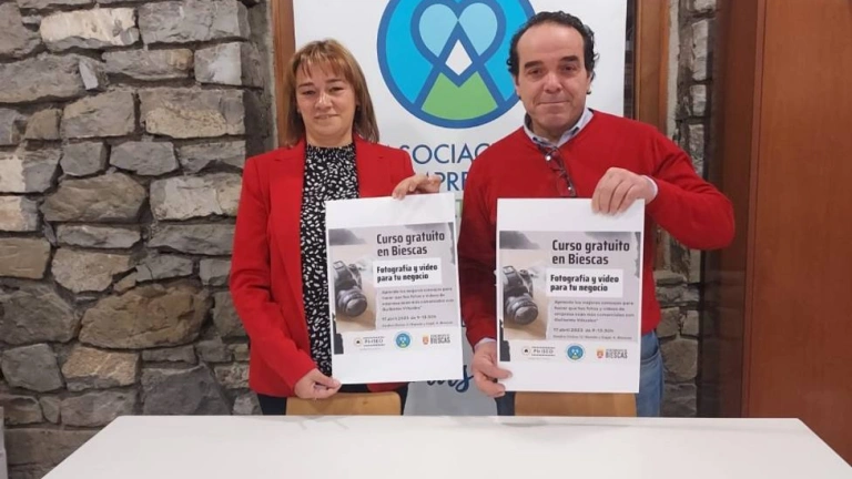 El ayuntamiento de Biescas y la Asociación de Empresarios Pirineos Alto Gállego han presentado esta mañana en el Centro Cívico de Biescas un nuevo curso orientado a todas las empresas de la Comarca del Alto Gállego para mejorar sus conocimientos en fotografía y vídeo comercial para sus negocios, acompañado de los mejores consejos para mejorar su visibilidad en las redes sociales, de la mano de Guillermo Viñuales, de la empresa de márketing y comunicación asociada a AEPAG, Piriseo.