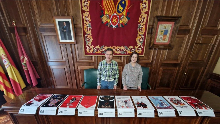 La alcaldesa de Teruel, Emma Buj y el concejal de Fiestas, Eduardo Suárez, hablan de los carteles