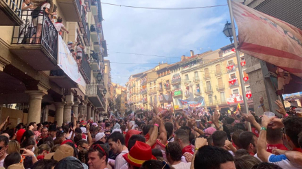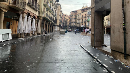 La lluvia durante un evento festivo siempre suele ser recibida con desagrado, pero para estos peñistas que disfrutan de la Vaquilla fue una bendición en un momento de necesidad