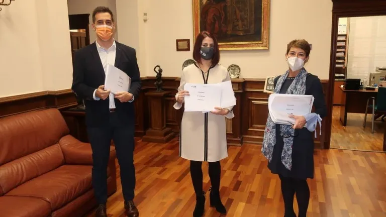 La alcaldesa de Teruel, Emma Buj (PP), el primer teniente de alcalde, Ramón Fuertes (Cs), y la concejal de Hacienda, Rocío Féliz de Vargas (PP), han presentado este miércoles el borrador de presupuesto para 2021, unas cuentas marcadas por la situación generada por la pandemia de coronavirus que presentan un claro carácter expansivo con el fin de reactivar la economía.