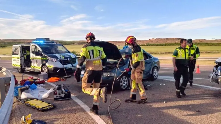 Hasta el lugar se han desplazado bomberos del Parque de Alcañiz, que han tenido que excarcelar a los tres ocupantes del turismo, que había chocado con un vehículo pick up, en el que viajaban otras dos personas.