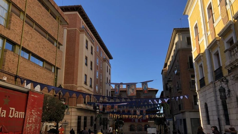 Sólo faltan unas horas para que Teruel emprenda el viaje al SXIII. La ciudad ultima los preparativos para las Bodas de Isabel de Segura. Ya se nota en la decoración de las calles del centro que lucen pendones y banderas, se han instalado los escenarios y otros elementos necesarios para la recreación teatral, se están montando las pantallas gigantes a través de las que se podrá seguir la recreación. Este año, por cierto, habrá dos más: en la Plaza del San Juan y en el Seminario que se suman a las de la Plaza del Torico y la calle de San Juan. Esta tarde comienza el montaje de las tabernas y desde primera hora de mañana jueves comenzará el montaje del mercado medieval y por lo tanto los cortes y los cambios de tráfico en el centro de la ciudad.