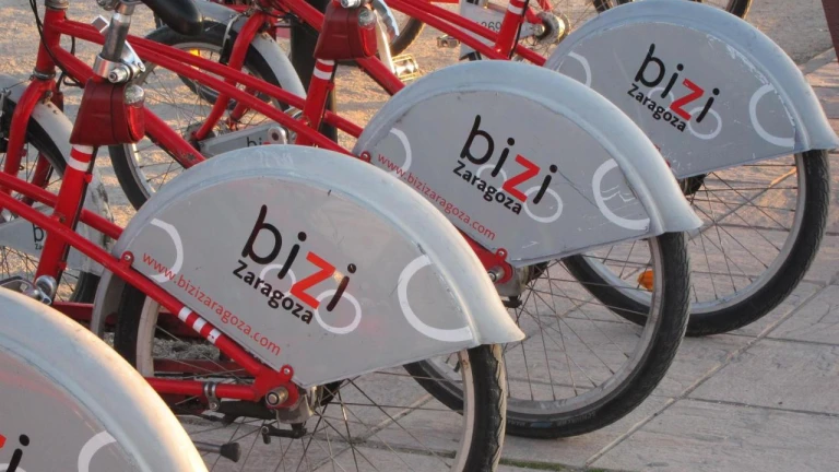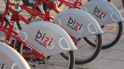 La alcaldesa de Zaragoza, Natalia Chueca, presenta un nuevo servicio de bicicletas de alquiler.