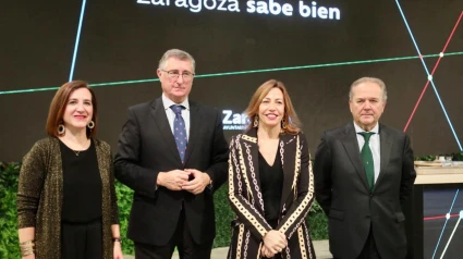 Declaraciones de la alcaldesa Natalia Chueca, en el día de Zaragoza en el stand de Aragón en FITUR