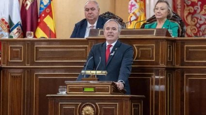 Momento de la intervención del presidente del PP en Aragón, Jorge Azcón, en el Senado.