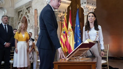 Momento en el que Azcón ha jurado su cargo como nuevo presidente aragonés.