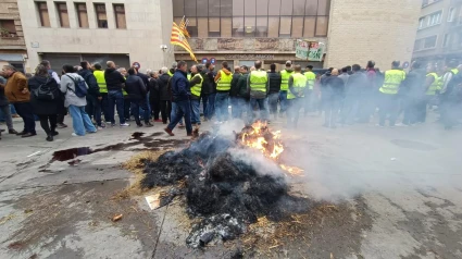 Pitos, cencerros y hogueras: cientos de agricultores se manifiestan en Zaragoza