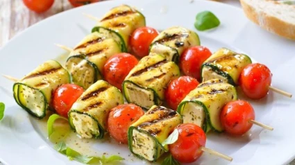 Según la RAE, un aperitivio es: “Bebida o pequeña cantidad de alimento que se toma antes de una comida principal para estimular el apetito”. Lo cierto es que en España es una práctica habitual como lo es tamibén en países mediterráneos Francia o Italia, o también en Portugal incluso en Argentina. Pero en la gran mayoría de países del mundo solo se realiza en fechas señaladas, festivos o días especiales. Un aperitivo clásico puede ser la tortilla de patata, calamares, vinagres en general, croquetas, embutidos, quesos o pequeños bocadillos pero Juan Barbacil nos propone en “Contigo pan y Cebolla” una variante que bien puede servir para abrir boca. Las brochetas son otra manera de combinar alimentos y en este caso la opción es un “casamiento” perfecto entre el calabacín, el queso y el tomate que le aporta frescor al conjunto. Así que nada mejor para estimular el apetito que una brocheta sana, suave, fácil y muy sabrosa. Además esta es una receta perfecta para preparar y degustar con los más pequeños. Los niños pueden ayudar al montaje de las brochetas y suelen aceptar muy bien estos sabores.