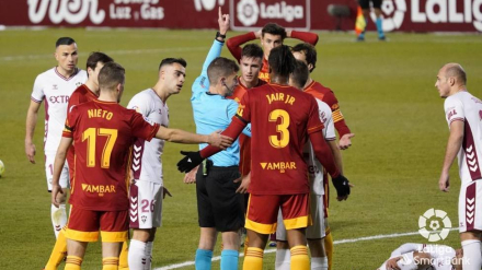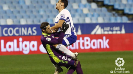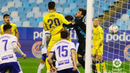 Un escandaloso penalti señalado por Ávalos Barrera determinó un partido que acabó con cuatro remates del conjunto aragonés a la madera