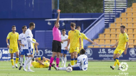 El conjunto local alineó durante nueve minutos a cinco jugadores con ficha no profesional y el club aragonés lo va a denunciar. Jannick Buyla fue expulsado y Vigaray se lesionó