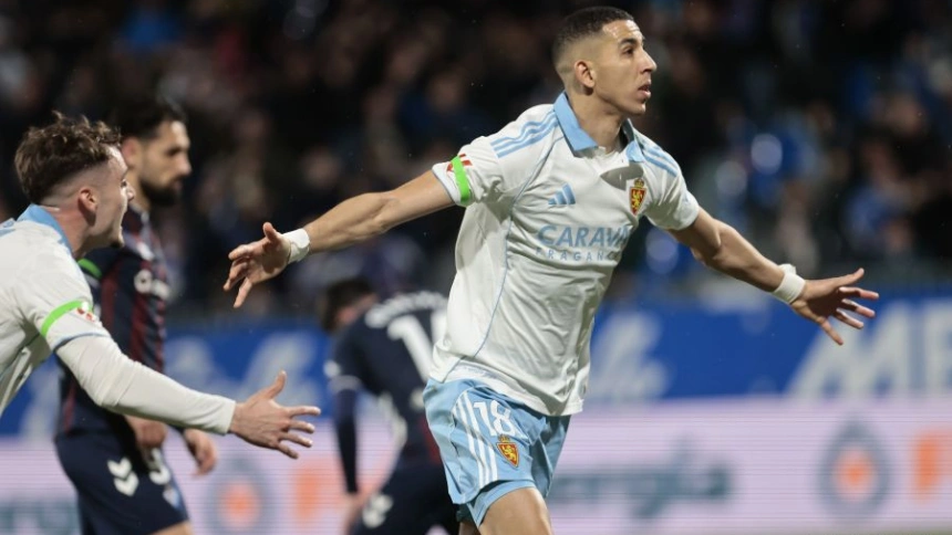 El técnico blanquillo, Rubén Sellés, aplicó una verdadera revolución en el once, forzado por las nueve bajas que acumula el conjunto aragonés, y propiciado también por las nuevas caras que llegaron en el mercado invernal, entre ellas, el omnipresente central marroquí, protagonista absoluto del partido.