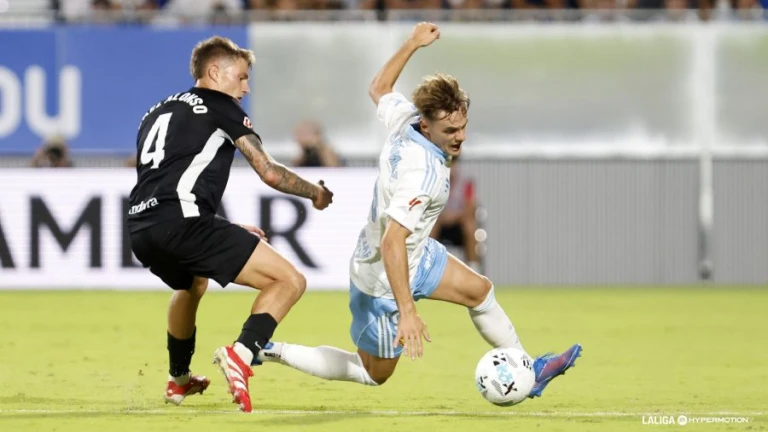Primero fue un disparo de Soberón el que probó a Aron, seguido del intento de Moyano, que mandó el meta a córner y, un minuto después, fue el turno de Radovanovic, con un remate flojo de cabeza tras un centro de seda de Tasende, sin peligro para el portero visitante.
