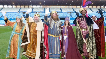 Los Reyes Magos aterrizan en La Romareda y llenan de magia las calles de Zaragoza
