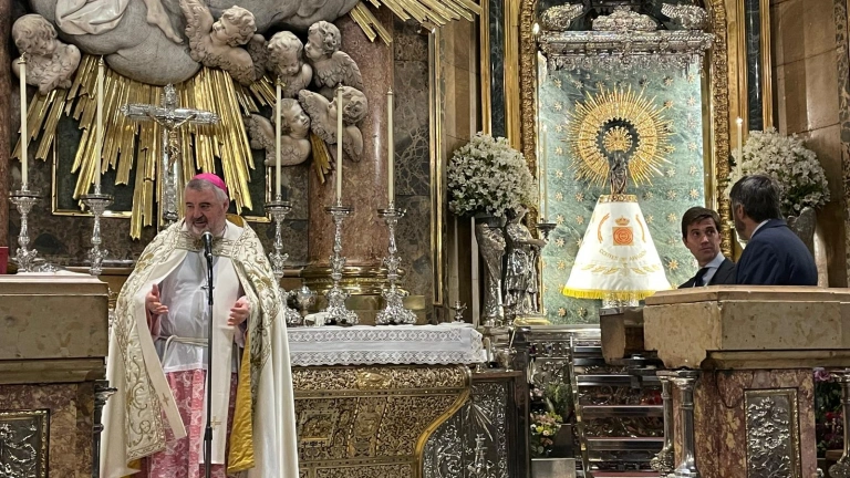 El arzobispo y la presidenta de las Cortes han pronunciado unas palabras y, posteriormente, el capellán de la Virgen, José María Bordetas, ha procedido ha realizar el cambio de manto.