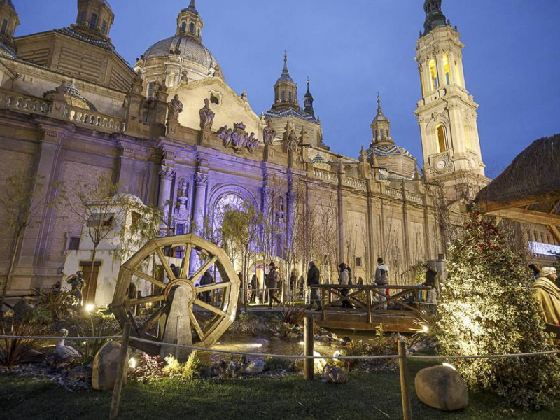 Como guiados por una Estrella de Belén que reluce en la fachada de la Basílica del Pilar, cada año miles de zaragozanos y visitantes acuden hasta el epicentro de la Navidad para perderse en el Belén más grande de España con figuras a tamaño real. Con más de 1.000 metros cuadrados y un centenar de figuras, adentrarse en él es hacer un viaje por el Zoco de Mercaderes, escuchar el anhelado mensaje del Ángel Anunciador o ver cómo los Reyes Magos culminan su largo viaje con oro, incienso y mirra para el Niño Jesús.