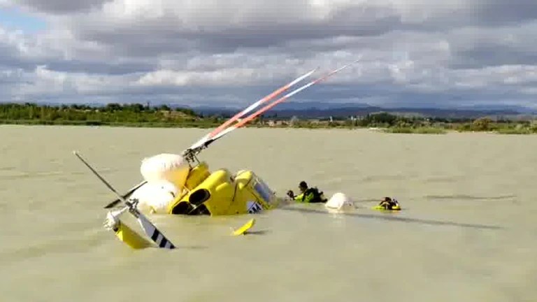 La unidad de buceo de Bomberos de Zaragoza llevaba trabajando en la zona desde el martes tras atender la solicitud realizada por el Ejecutivo Autonómico. La aeronave, que pesa aproximadamente 4.300 kilos, se encontraba a unos quince metros de la orilla y estaba sumergida parcialmente en el agua. Las labores de los Bomberos se centraron en reflotar el helicóptero para poder arrastrarlo hasta tierra.