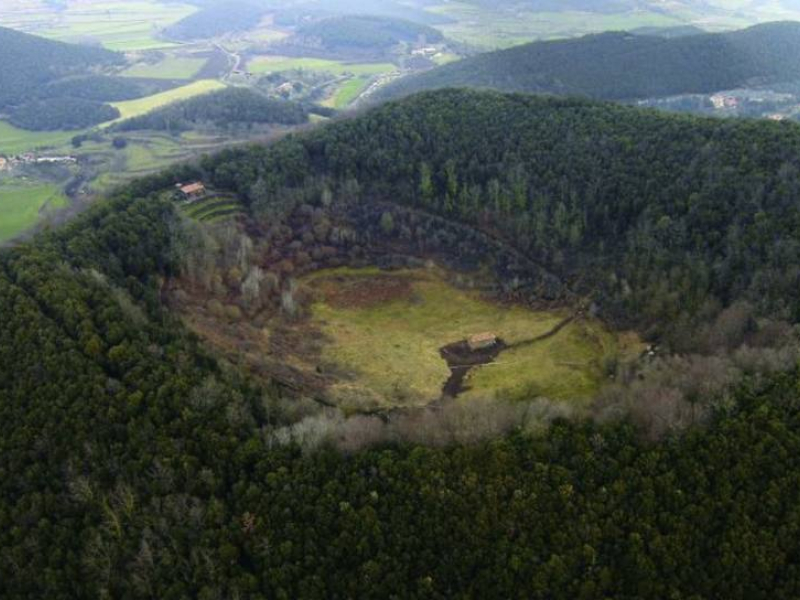 Junto a los volcanes canarios, el otro foco volcánico activo de España lo encontramos en Girona, en la comarca de La Garrotxa. A pesar de considerarse una zona activa, el Parque Nacional de La Garrotxa no registra movimientos volcánicos desde hace miles de años por lo que no supone un riesgo para la población. En este espacio se localizan hasta 40 conos volcánicos. Uno de ellos es El Croscat, el más grande de la Península Ibérica.