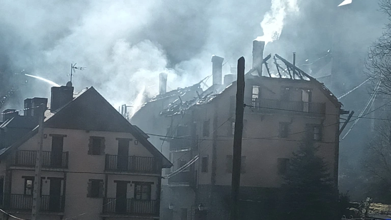 Un aparatoso incendio que ha obligado a desalojar a 15 personas que vivían en este edificio situado en la aldea de Parzán, perteneciente al municipio oscense de Bielsa. Todas ellas han sido realojadas por el ayuntamiento de esta localidad y ninguna ha resultado herida. Al parecer la causa de lo ocurrido ha estado en el incendio de una chimenea.
