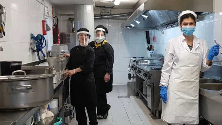 El Comedor Social de la Parroquia del Carmen ha necesitado modificar algunas de sus pautas de actuación. Para empezar, los voluntarios que obraban en el comedor tuvieron que dejar de acudir porque eran personas mayores y por lo tanto de riesgo. Así que tuvieron que contratar a dos profesionales de cocina. También se modificó la forma de ofrecer el servicio, solo permitiendo acceso al comedor a aquellas personas “sin techo” y facilitando la comida en tupers a las personas que tienen cobijo. Además se tomaron las medidas higiénicas extraordinarias, como distanciar las mesas, uso de material desechable y solo permitir 16 comensales simultáneamente en aforo de 120.