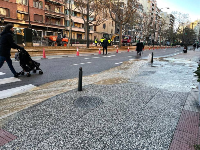 Sobre las nueve de la mañana se ha producido el reventón de una tubería a la altura del número 50 del paseo de Sagasta de Zaragoza, junto al centro de salud