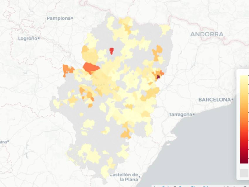 Aragón ha pasado de estar en riesgo alto con 150 casos por 100.000 habitantes a 14 días a estar ya rozando el riesgo extremo con 224 casos por 100.000. Ese nivel de riesgo extremo se alcanza al llegar a los 250 casos. Dentro de la comunidad, hay municipios que hacen subir especialmente esa incidencia. Son, evidentemente, los que más preocupan.
