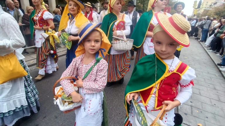 Desde la Casa de Canarias le llevan a la Virgen, entre otros productos típicos, "plátanos, aguacates y mangos", como nos cuenta su presidente, Pedro Díaz. Este año les acompaña, además, un grupo de 40 personas de Galdar, un pueblo del Norte de Canarias, de toque de y cuerpo de baile.