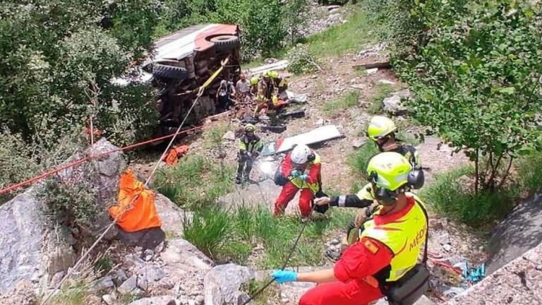 Al parecer el vehículo, en el que iban 20 personas, 14 de ellos menores de edad, se precipió por un terraplén desde una altura de 15 metros, en la pista forestal que une Eriste con el refugio Ángel Orús, en el término municipal de Sahún, en la provincia de Huesca.