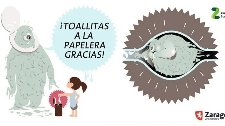 La sociedad municipal Ecociudad ha puesto en marcha una campaña de concienciación para evitar el vertido por el inodoro de toallitas húmedas y otros residuos sólidos. En los últimos cuatro años, los restos de toallitas deshilachadas y otras fibras gestionados en las depuradoras de Zaragoza han crecido un 6,6%, pasando de unas 328 toneladas anuales en 2015 a algo más de 350 toneladas en 2019. Ante esta situación la consejera de Infraestructuras y Medio Ambiente y vicepresidenta de Ecociudad, Patricia Cavero ha explicado que se ha decidido relanzar una campaña de sensibilización “para concienciar a los zaragozanos y zaragozanas de que este tipo de residuos sólidos deben depositarse en la papelera”.
