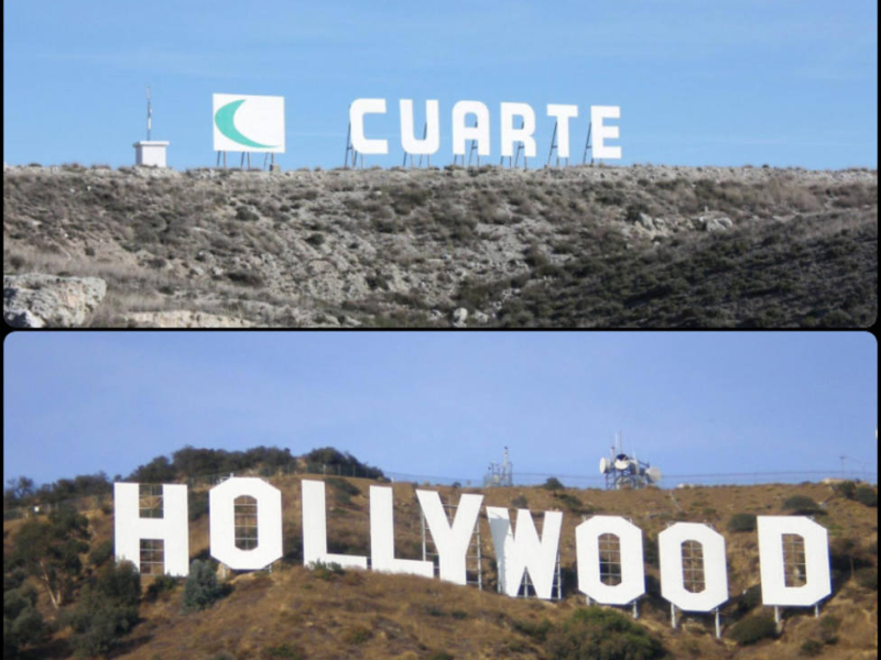 Tras repasar los 7 monumentos zaragozanos con parecidos más que razonables con otros que están ubicados alrededor del mundo, no queremos terminar este recorrido sin mostrate esta curiosidad que hemos encontrado en Cuarte. Si el cartel de Hollywood capitanea la zona más cinematográfica de Los Ángeles, la localidad zaragozana de Cuarte cuenta con su propia letrero al más puro estilo californiano.