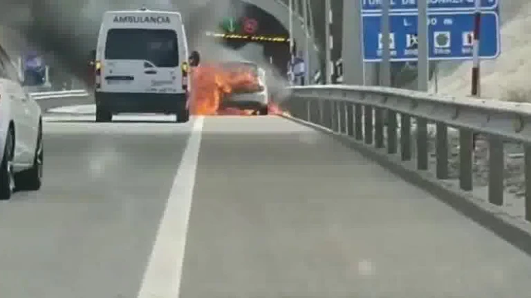Incendio de un turismo a la entrada del túnel de Monrepós