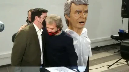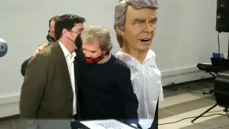 Fernando Simón posa con su cabezudo y el látigo de honor