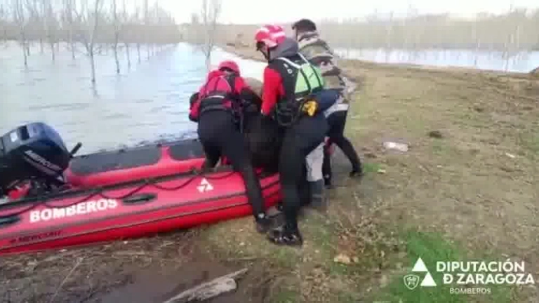 Los bomberos de la DPZ han rescatado un ternero de una granja que se ha visto afectada por la crecida.