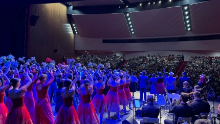 Una imagen de la representación de 'Carretera de Avilés' de 2024, con el Auditorio del Niemeyer lleno de gente.
