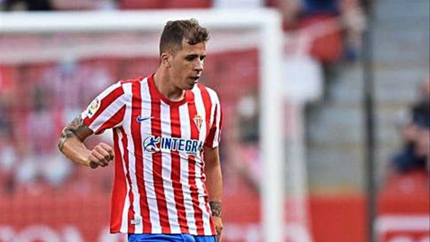 Christian Rivera en zona mixta (Sporting-Cádiz)
