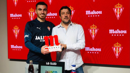 El jugador del Sporting recogió el premio a Jugador Cinco Estrellas del mes de octubre en el Sporting.