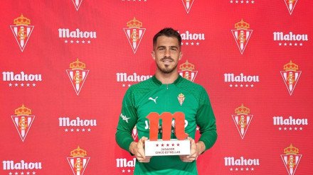 El portero rojiblanco ha recibido el premio a mejor jugador del mes de agosto en el Real Sporting. Cree que el balance del inicio de temporada está siendo "positivo".