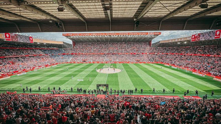 Sergi Enrich adelantó al Real Oviedo al filo del descanso. Djuka empató tras un penalti señalado por el VAR. Gran ambiente en El Molinón con cerca de 25.000 espectadores.