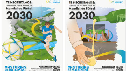 Así son los carteles que 'Asturias es Mundial' expande por el Principado